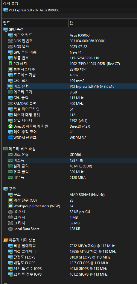 XX60이하의 중급기 시리즈 중에 오랜만에 다시 등장한 16배속 그래픽카드(RX9060)이다. xx60 이하의 중급기들은 구형 시스템에서 그래픽카드만 업그레이드등에 들어갈 확율이 좀 있다. 하지만 요즘 나오는 중급 혹은 하급 그래픽카드들은 원가 절감을 이유로 8배속이나 심지어 4배속 그래픽카드들만 나왔었다. 현재 나와있는 프로그램에서느 큰 차이가 없다고 하지만 이후에 나올 프로그램에서나 V램을 많이 사용하는 작업에서는 성능 저하가 발생한다.