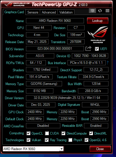 ASUS RX9060 BIOS